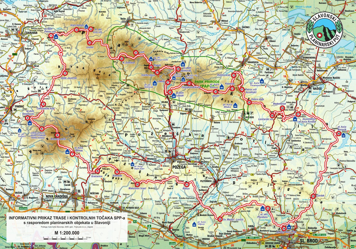 Slavonski planinarski put (SPP) obuhvaća područja planina Papuka, Psunja, Babje i Požeške gore, Dilj-gore i Krndijem. SPP je vezni put, a može se obilaziti i kao točkasta obilaznica. Ukupna dužina obilaznice je oko 290 km, ima 35 kontrolnih točaka (KT-a), vrijeme obilaska je oko 75 sati. Upravljač je udruga Slavonski planinari.